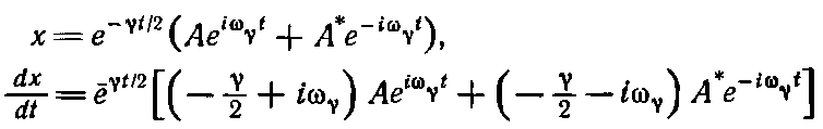 Прежде всего поведение системы, на которую не действует внешняя сила, описывается суммой (суперпозицией) временных экспонент [мы записали их в виде exp(i?t)]. Такое решение хорошо передает истинное положение вещей. В общем случае ? — это комплексное число, и его мнимая часть соответствует затуханию колебаний. Наконец, тесная математическая связь синусоидальных и экспоненциальных функций, о которой говорилось в гл. 22, физически часто проявляется в переходе от колебаний к чисто экспоненциальному затуханию при критических значениях некоторых параметров системы (в нашем случае это было сопротивление ?).