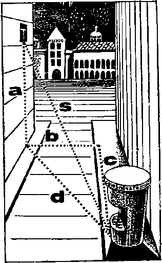 От моего окна (на пятом этаже) до газетного киоска на противоположной стороне улицы «напрямую» S метров. По тротуару от моего дома с метров, b — ширина улицы, а — высоты моего окна. Требуется найти S, не мешая уличному движению — не протягивая из окна к киоску туго натянутой веревки, а вычислив это расстояние через a, b и с.