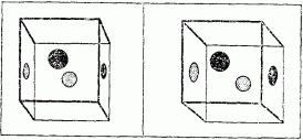 Рис. 122. Стеклянный куб с пятнами, рассматриваемый левым и правым глазом.