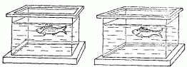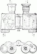 Если вам не удастся приобрести способность управлять своими глазами, вы можете, за неимением стереоскопа, пользоваться стеклами очков для дальнозорких — надо подклеить их под отверстия в картоне так чтобы смотреть только через внутренние края стекол; между рисунками следует поместить какую-нибудь перегородку. Этот упрощенный стереоскоп вполне достигает цели.