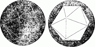 Рис. 133. Стереоскопический блеск. Сливаясь при рассматривании в стереоскоп, эти рисунки дают изображение блестящего кристалла на черном фоне.