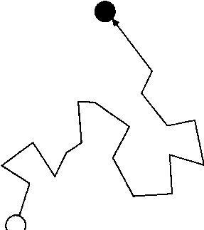 Рис. 2.3. Траектория случайных блужданий частицы газа под воздействием столкновений, в результате чего частица постепенно удаляется от исходного положения.