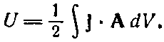 Далее, любое распределение постоянных токов можно считать состоящим из нитей, идущих вдоль тех линий, по которым течет ток. Для любой пары таких контуров энергия дается выражением (15.19), где интеграл взят вокруг одного из контуров, а векторный потенциал А создан другим контуром. Полная энергия получается сложением всех таких пар. Если вместо того, чтобы следить за парами, мы полностью просуммируем по всем нитям, то каждую энергию мы засчитаем дважды (такой же эффект мы наблюдали в электростатике), и полную энергию можно будет представить в виде