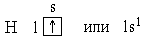 При l=0, т.е. на s-подуровне *, имеется всего одна орбиталь *, которую принято изображать в виде клетки. В атоме Н единственный электрон находится на самом низком из возможных энергетических состояний, т.е. на s-подуровне первого электронного слоя (на 1s-подуровне). Электронную структуру атома Н можно представить схемой: