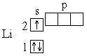 У следующего за гелием элемента лития (Z=3) третий электрон уже не может разместиться на орбитали K-слоя[25]: это противоречило бы принципу Паули *. Поэтому он занимает s-состояние второго энергетического уровня (L-слой[26], n=2). Его электронная структура записывается формулой 1s22s1, что соответствует схеме: