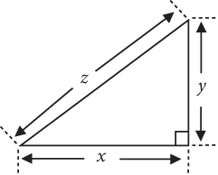 Пифагор утверждал, что квадрат гипотенузы равен сумме квадратов катетов. Математически теорему Пифагора можно записать как x? + y? = z?, где z – длина гипотенузы (самой длинной стороны прямоугольного треугольника), а x и y – длины двух других сторон, называемых катетами (рис. 1). Символы x, y и z рассматриваются как заполнители для фактических длин сторон, а x? – математическая запись, означающая x, умноженный на x. Например, 32 = 9, 72 = 49 и так далее. В использовании символов x, y и z нет ничего особенного. Мы могли бы применить в качестве заполнителя любой символ. Возможно, теорема Пифагора покажется вам более понятной, если мы запишем ее как