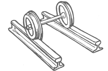 Вспомним о том, что колесная пара связана жесткой осью без всякого дифференциала, а само колесо имеет слегка коническую форму. При отклонении от положения равновесия (середина ж/д полотна) одно колесо вращается по б?льшему радиусу, т. е. проходит больший путь, чем второе, – в результате вагон слегка поворачивает и возвращается назад к середине полотна. А выступы, как замечает Р. Фейнман, – они только для безопасности, чтобы не дать поезду сойти с рельсов при слишком больших отклонениях от равновесия.