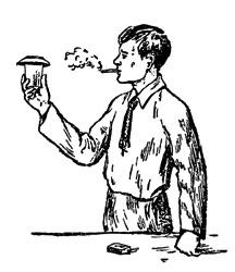 Одним из самых простых и в то же время наиболее мудреных фокусов для незнающих химии является такой: фокусник берет в рот папиросу и, показывая на стоящий перед ним стакан, говорит, что сейчас он соберет дым папиросы в этот стакан, да еще в закрытый. При этом "профессор белой и черной магии" закуривает папиросу, а стакан прикрывает чайным блюдцем.