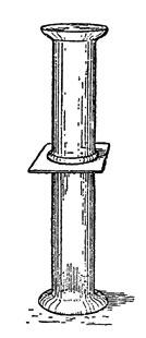 Этот опыт можно варьировать на разные лады. Можно предварительно выкурить папиросу и сказать публике, что вы сейчас сделаете то, чего никто из присутствующих сделать не может: соберете рассеявшийся по комнате дым и наполните им закрытый стакан. Говоря так, вы обратите внимание зрителей на стакан, прикрытый куском картона, на котором стоит другой стакан, опрокинутый вверх дном. Еще лучше, если замените стаканы двумя узкими и высокими стеклянными цилиндрами с широкими фланцами (рис. 2).