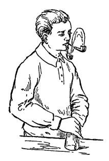 Можно обойтись и без всякой посуды и изумить своих товарищей, покуривая сразу две трубочки, дым которых будет идти из одной в другую (рис. 3).