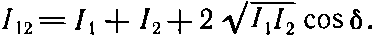 где ? — разность фаз между h1 и h2. Вводя интенсивности из (37.2), можем написать