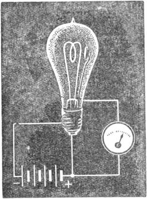 Рис. 44. Над раскаленной нитью вьется облачко электронов. Прибор показывает присутствие тока между нитью и пластинкой.
