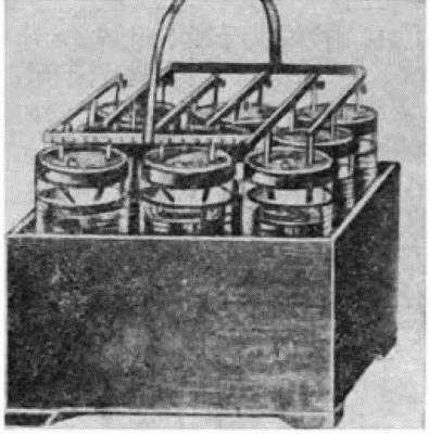 Первая свинцово-кислотная батарея, преподнесенная Парижской академии наук изобретателен Гастоном Плантэ