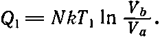 совершается за счет энергии Q1, полученной из резервуара. Во время расширения pV=NkT1 или