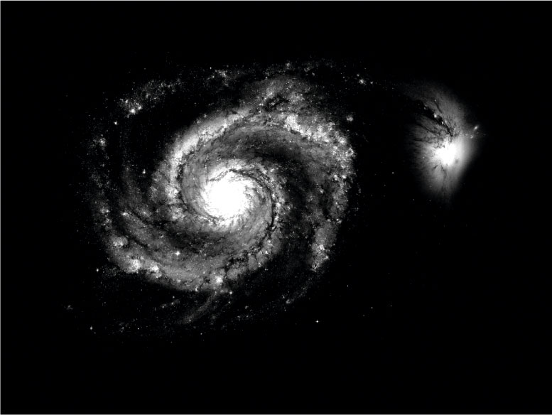 Если в ясную безлунную ночь посмотреть на небо, то, скорее всего, самыми яркими объектами, которые вы увидите, будут планеты Венера, Марс, Юпитер и Сатурн. Кроме того, вы увидите огромное количество звезд, похожих на наше Солнце, но находящихся гораздо дальше от нас. При обращении Земли вокруг Солнца некоторые из этих «неподвижных» звезд чуть-чуть меняют свое положение относительно друг друга, т. е. на самом деле они вовсе не неподвижны! Дело в том, что они несколько ближе к нам, чем другие. Поскольку же Земля вращается вокруг Солнца, близкие звезды видны все время в разных точках фона более удаленных звезд. Благодаря этому можно непосредственно измерить расстояние от нас до этих звезд: чем они ближе, тем сильнее заметно их перемещение. Самая близкая звезда, называемая Проксимой Центавра, находится от нас на расстоянии приблизительно четырех световых лет (т. е. свет от нее идет до Земли около четырех лет), или около 37 миллионов километров. Большинство звезд, видимых невооруженным глазом, удалены от нас на несколько сотен световых лет. Сравните это с расстоянием до нашего Солнца, составляющим всего восемь световых минут! Видимые звезды рассыпаны по всему ночному небу, но особенно густо в той полосе, которую мы называем Млечным Путем. Еще в 1750 г. некоторые астрономы высказывали мысль, что существование Млечного Пути объясняется тем, что бо?льшая часть видимых звезд образует одну дискообразную конфигурацию – пример того, что сейчас называется спиральной галактикой. Лишь через несколько десятилетий астроном Уильям Гершель подтвердил это предположение, выполнив колоссальную работу по составлению каталога положений огромного количества звезд и расстояний до них. Но даже после этого представление о спиральных галактиках было принято всеми лишь в начале XX века.