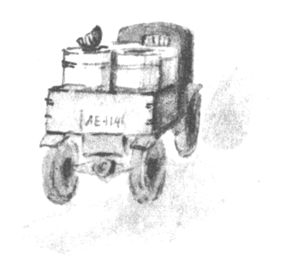 — Стой, стой! — проскрипели Тормоза, и около бака остановилась большая чёрная машина. Двое рабочих выйалили в неё мусор из бака, но при этом уронили на асфальт Арбузную Корку и Старую Калошу, которые лежали на самом верху.