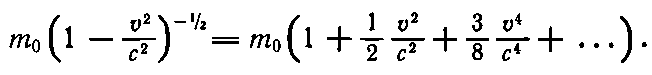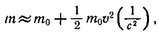 Разлагая m0/?(1-v2/c2)=m0(1-v2/с2)-1/2 в ряд по формуле бинома Ньютона, можно найти приближенно рост массы при малых скоростях. Получается