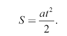 2. Пространство S, пройденное в течение t секунд, определяется формулой: