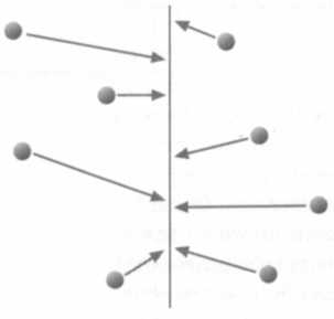 Больцман исходил из классической модели кинетической теории и вновь воспользовался предложенной Максвеллом идеей о функции распределения. Она давала вероятность того, что случайно выбранная молекула будет находиться в определенном диапазоне скоростей. Более детальный анализ понятия функции распределения не только поможет лучше понять статью Больцмана, но и даст представление о том, какими инструментами пользуются физики при подходе к проблеме, которая вначале кажется непригодной. Больцман оперировал двумя упрощающими гипотезами, которые можно обобщить так.