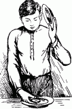 Следует еще заметить, что название чревовещатель является неподходящим. Чревовещатель должен скрывать от своих слушателей тот факт, что, когда очередь доходит до мнимого партнера, он в действительности говорит сам. Для этой цели он пользуется различными уловками. При помощи всякого рода жестов он старается отвлечь внимание слушателей от себя. Склоняясь набок и держа руку у уха, как будто прислушиваясь, он стремится по возможности спрятать свои губы. Когда он не может спрятать своего лица, то старается делать лишь самые необходимые движения губами. Этому помогает то обстоятельство, что часто требуется лишь неясный, слабый шепот. Движения губ скрываются так хорошо, что некоторые люди думают, будто голос артиста выходит откуда-то из глубины его тела, — отсюда название: чревовещатель.
