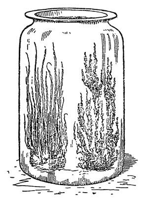 Выращивается, однако, такой сад не на воздухе. Для растений, в нем произрастающих, нужна не углекислота, а другая питательная среда. Наоборот, все кислоты, даже следы их, гибельны для такого "сада".