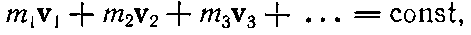 Закон сохранения полного импульса некоторого числа взаимодействующих частиц в отсутствие внешних сил можно записать в виде