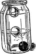 Возьми три шарика одинаковой величины. Один подбери стальной, от шарикоподшипника. Другой слепи из парафина (он продается в аптеке) или из стеарина от свечки. Третий вырежь из пробки, пенопласта, из бузинной мякоти или другого легкого материала. Вымой баночку из-под майонеза или горчицы и налей в нее воды примерно до половины. Опусти туда все три шарика. Что с ними станет?