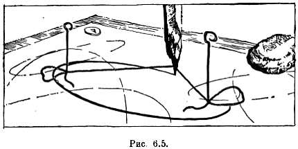 Если привязать нитку к двум булавкам, воткнутым в лист чертежной бумаги, натянуть нитку острием карандаша и двигать карандашом так, чтобы нитка оставалась натянутой, то на бумаге в конце концов прочертится замкнутая кривая — это в есть эллипс (рис. 6.5). Места, где находятся булавки, будут фокусами эллипса.