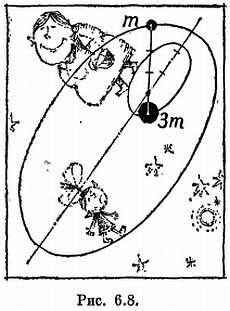 Огромная масса Солнца делает его центром семейства. В двойных звездах оба небесных тела имеют близкие по величине массы. В этом случае нельзя считать, что одна из двух звезд покоится. Как же происходит движение в этом случае? Мы знаем, что каждая замкнутая система имеет одну покоящуюся (или равномерно движущуюся) точку — это центр инерции. Вокруг этой точки и вращаются обе звезды. При этом они описывают подобные эллипсы, что следует из написанного на стр. 143 условия m1/m2 = r2/r1. Эллипс одной звезды больше эллипса другой во столько раз, во сколько раз ее масса меньше массы другой (рис. 6.8). При равных массах обе звезды будут описывать около центра инерции одинаковые траектории.