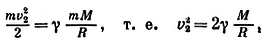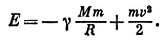 Подставив значение скорости спутника, найдем для кинетической энергии выражение γ∙m∙M/2R. Мы видим, что по абсолютной величине кинетическая энергия в два раза меньше потенциальной, а полная энергия равна