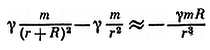 Пусть М — масса и R — радиус Земли. Тогда сила притяжения тела массы m у земной поверхности