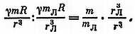 Сравнить действие любого небесного тела с действием Луны очень легко: надо разделить добавочные ускорения этого тела на «лунный добавок»: