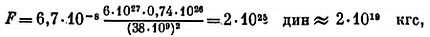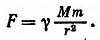 А что это за γ, которая вошла в формулу? Это коэффициент пропорциональности. Нельзя ли считать его равным единице, как мы это уже неоднократно делали? Нет, нельзя: мы условились измерять массу в граммах, расстояние в сантиметрах, а силу в динах. Значение γ равно силе притяжения между двумя массами в 1 г, находящимися на расстоянии 1 см. Мы не можем считать силу равной чему-то, в том числе и одной дине: коэффициент γ должен быть измерен.