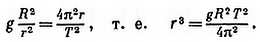 «Висящий» спутник должен вращаться с периодом Т, равным 24 часам. Если r есть расстояние спутника от центра Земли, то его скорость v = 2π∙r/T и его ускорение v2/r = (4π2/T2)∙r. С другой стороны, это ускорение, источником которого является земное притяжение, равно γM/r2 = gR2/r2. Приравнивая величины ускорений, получим: