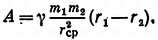 Положим, что под действием взаимного притяжения тела немного сблизились. Между ними было расстояние r1, а стало r2. При этом совершается работа А = F∙(r1 — r2). Значение силы надо взять в какой-то средней точке. Итак,