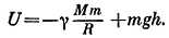 Энергия тяготения — важная величина, и интересно получить формулу ее, которая годилась бы для тела, поднятого на любую высоту над Землей, а также вообще для двух масс, притягивающихся по универсальному закону: