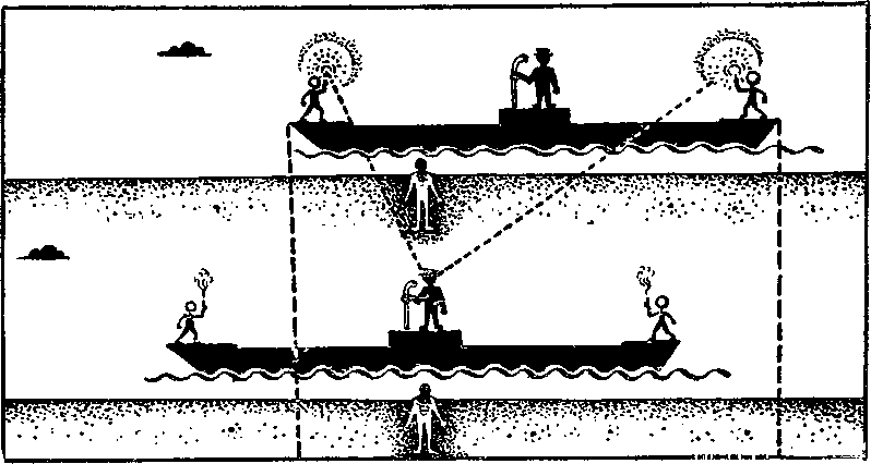 Допускаю, что новичка-читателя все-таки одолевает сомнение: нет ли в нашем рассуждении ошибки. Не потому ли вышло несогласие, что пароход движется, а бакенщик стоит на месте?