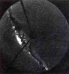 Рис. 0.3. Млечный Путь, сфотографированный с помощью широкоугольной камеры. Темные полосы на изображении обусловлены конструктивными особенностями камеры. (Снимок В. Шлоссера, Астрономический институт Рурского университета в Бохуме.)