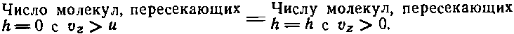 Давайте сформулируем все поточнее: подсчитаем, сколько молекул проходит снизу вверх через плоскость h=0 (называя заданный уровень нулевой высотой, мы вовсе не считаем, что здесь пол, просто это удобнее нам для начала отсчета, и на отрицательной высоте может находиться газ). Эти молекулы газа движутся во всех направлениях, и некоторые из них проходят через нашу плоскость; таким образом, в любой момент сквозь плоскость снизу вверх проходит известное число молекул в секунду с заданной скоростью. Затем отметим следующее: если через u обозначить скорость, необходимую для того, чтобы подняться на высоту h (кинетическая энергия mu2/2=mgh), то число молекул в секунду, поднимающихся с нижней плоскости строго вверх и имеющих составляющую скорости, большую чем u, в точности равно числу молекул, пересекающих верхнюю плоскость с любой вертикальной составляющей скорости. Те молекулы, вертикальная скорость которых не превышает u, не достигают верхней плоскости. Таким образом,