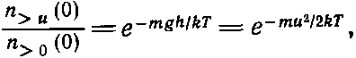 поскольку 1/2mu2=mgh. Теперь скажем это своими словами: число молекул, пересекающих за 1 сек единичную площадь на высоте 0 с вертикальной составляющей скорости, превышающей u, равно произведению числа молекул, пересекающих эту площадку со скоростью, большей нуля, на ехр(-mu2/2kT).