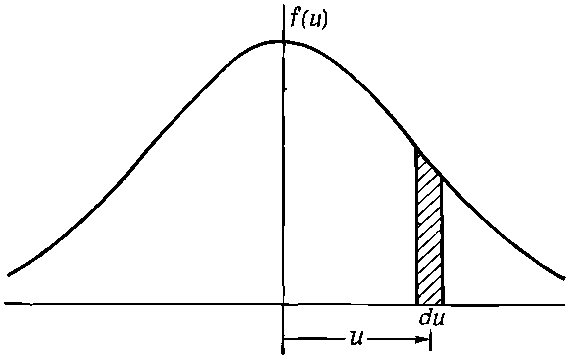 Этот способ описания распределения по скоростям —когда подсчитывается число молекул, проходящих через выделенную площадку с заданной минимальной z-составляющей скорости,— отнюдь не самый удобный. Например, чаще хотят знать, сколько молекул в заданном объеме газа движется, имея z-составляющую скорости между двумя заданными значениями, а это, конечно, из (40.4) сразу не получишь. Поэтому придадим нашей формуле удобную форму, хотя то, что мы получили, — это весьма общий результат. Заметим, что невозможно утверждать, что любая молекула в точности обладает той или иной наперед заданной скоростью; ни одна из них не движется со скоростью, в точности равной 1,7962899173 м/сек. Итак, чтобы придать нашему утверждению какой-то смысл, мы должны спросить, сколько молекул можно найти в заданном интервале скоростей. Нам придется говорить о том, как часто встречаются скорости в интервале между 1,796 и 1,797 и т. п. Выражаясь математически, пусть f(u)du будет долей всех молекул, чьи скорости заключены в промежутке u и u+du, или, что то же самое (если du бесконечно мало), долей всех молекул, имеющих скорость и с точностью до du. На фиг. 40.5 представлена возможная форма функции f(u), а заштрихованная часть ширины du и средней высоты f(u) — это доля молекул f(u)du.