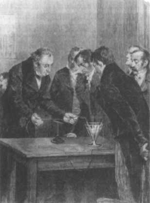 Эрстед проводит электромагнитный эксперимент в Копенгагенском университете.