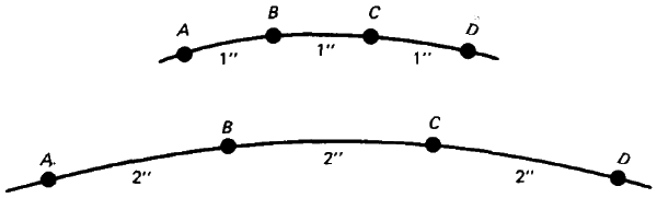 Знай обо всем этом Эйнштейн в 1917 г., он, вероятно, занялся бы поисками расширяющейся, а не статической модели вселенной. Иными словами, он, скорее всего, считал бы пространство трехмерным аналогом поверхности не просто шара, а расширяющегося воздушного шара. Дело вот в чем. Допустим, туманность для нас аналогична нерасширяющимся точкам на равномерно расширяющемся воздушном шаре. Возможно, первое, что придет в голову, это что все точки будут удаляться друг от друга по поверхности шара с одной и той же скоростью — ведь шар расширяетя равномерно. Но вскоре мы убедимся, что это не так. Возьмем такой простой случай, как ряд точек, А, В, С и D, расположенных в сантиметре друг от друга, и представим себе, что каждую секунду расстояние между ними увеличивается вдвое. Тогда, несмотря на то что расстояние АВ увеличилось за одну секунду на 1 сантиметр, расстояние АС увеличилось на 2 сантиметра, а АD — на 3. Таким образом, скорость разбегания растет пропорционально разделяющему точки расстоянию — это в точности соответствует наблюдениям Хаббла за разбеганием туманностей.?