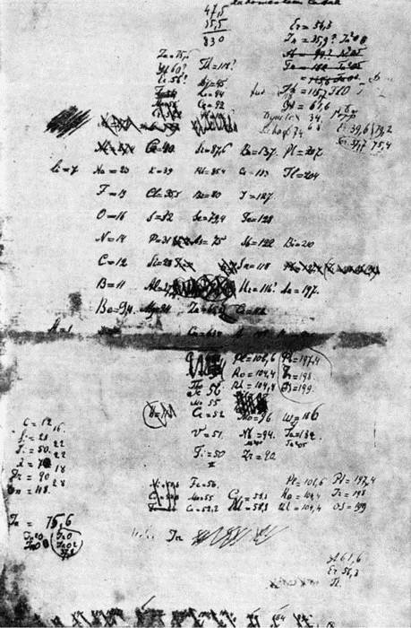 Расположив элементы в ряд по возрастанию неверных, (о чем тогда никто не знал) значений атомных весов, ни один химик в мире не мог бы обнаружить никакой общей закономерности в их свойствах, тем более что о существовании еще не известных элементов в те времена вообще никто не мог подозревать.