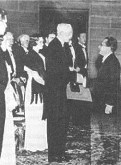 Австрийский физик получает Нобелевскую премию из рук короля Швеции Густава V в 1933 году.