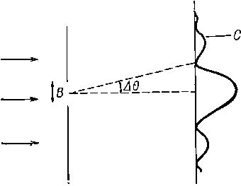 Фиг. 38.2. Дифракция частиц, проходящих сквозь щель.