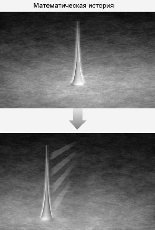 Отметим, что при изложении первой истории я не использовал ни слово «расщепляться», ни понятия «множество миров», «параллельные вселенные» или «квантовая мультивселенная». Многомировой подход не нуждается в этих гипотезах. Они не играют никакой роли в фундаментальной математической структуре теории. Но, как мы сейчас увидим, эти идеи будут призваны во второй истории, когда, следуя Эверетту и его последователям, расширившим его пионерские результаты, мы изучаем, как математика объясняет нам то, что мы наблюдаем и измеряем.