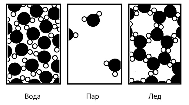 Вдохновленные успехом ньютоновской механики в астрономии, физики использовали ее для описания непрерывного течения жидкостей и колебаний упругих тел и вновь добились хороших результатов. Даже кинетическая теория теплоты получила механистическое обоснование: теплота — энергия, порожденная сложным хаотическим движением молекул вещества. Так, при повышении температуры воды подвижность молекул растет, пока они не преодолевают сил взаимного притяжения и не разделяются. При этом вода превращается в пар. А при охлаждении движение молекул замедляется, между ними возникает более тесная связь, они соединяются в новую, более жесткую и неподвижную структуру, и образуется лед. Так же чисто механически можно объяснить множество других тепловых явлений (рис. 2).