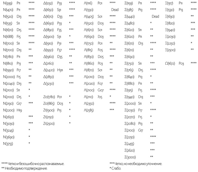 Таблица 2. Таблица барионов, апрель 1974 г.