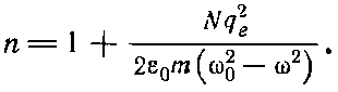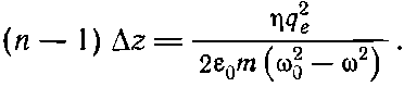 Заметьте, что обе стороны этого равенства пропорциональны ?z, поскольку ? — число атомов на единицу площади — равно N?z, где N — число атомов на единицу объема пластинки. Подставляя N?z вместо ? и сокращая на ?z, получаем наш основной результат — формулу для показателя преломления, выраженную через константы, зависящие от свойств атомов, и частоту света:
